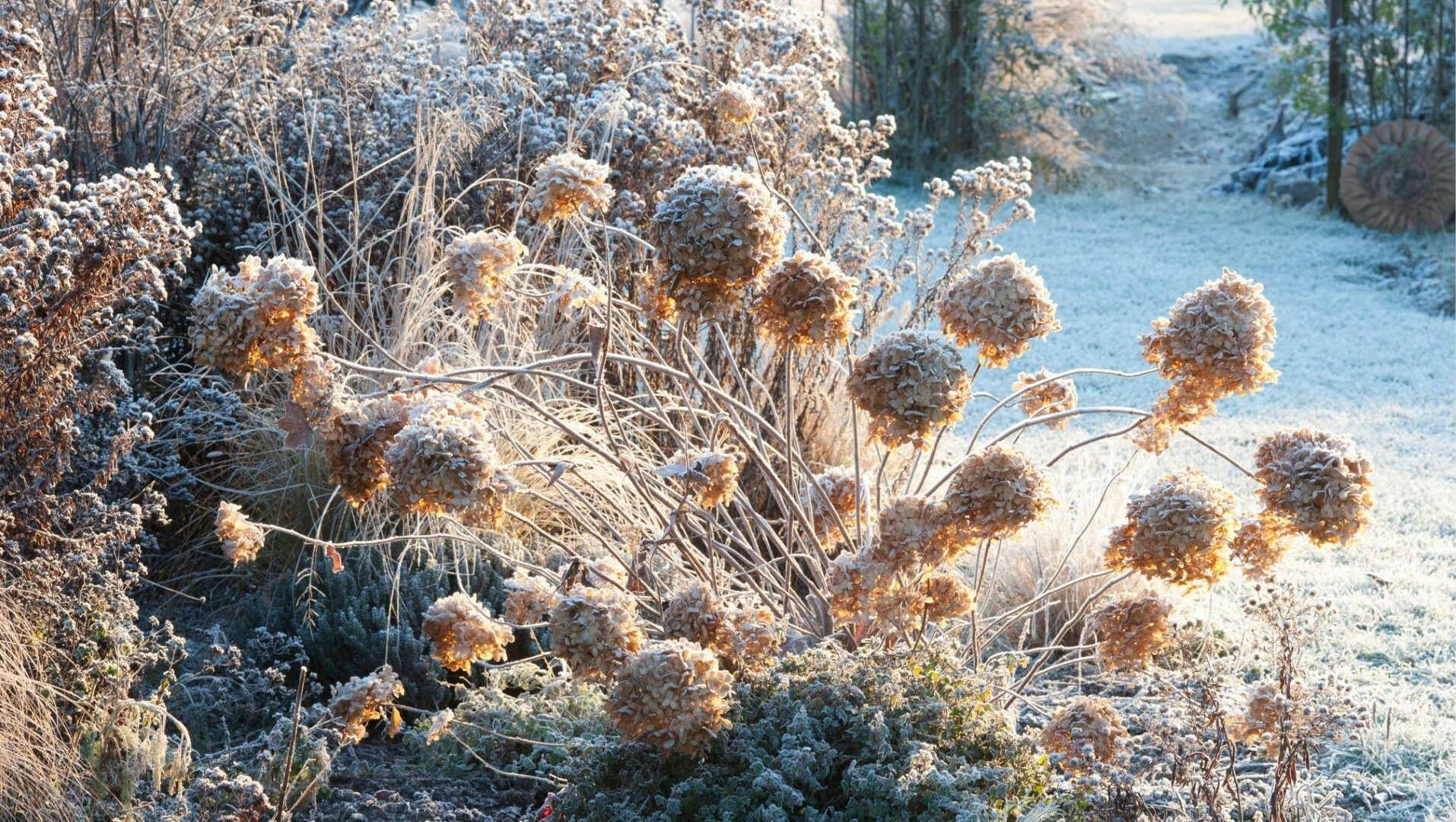 Šviesiosios hortenzijos. Pačios atspariausios šalčiams iš visų. Be jokių uždangų ar priedangų išveria tikrus speigus iki -35 laipsnių. Jeigu šakelės kiek ir apšąla, tai nedaro jokios poveikio nei žiedų kiekiui, nei kokybei ateinantį sezoną, nes žiedinius pumpurus šviesiosios hortenzijos krauna ant tų metų ūglių.