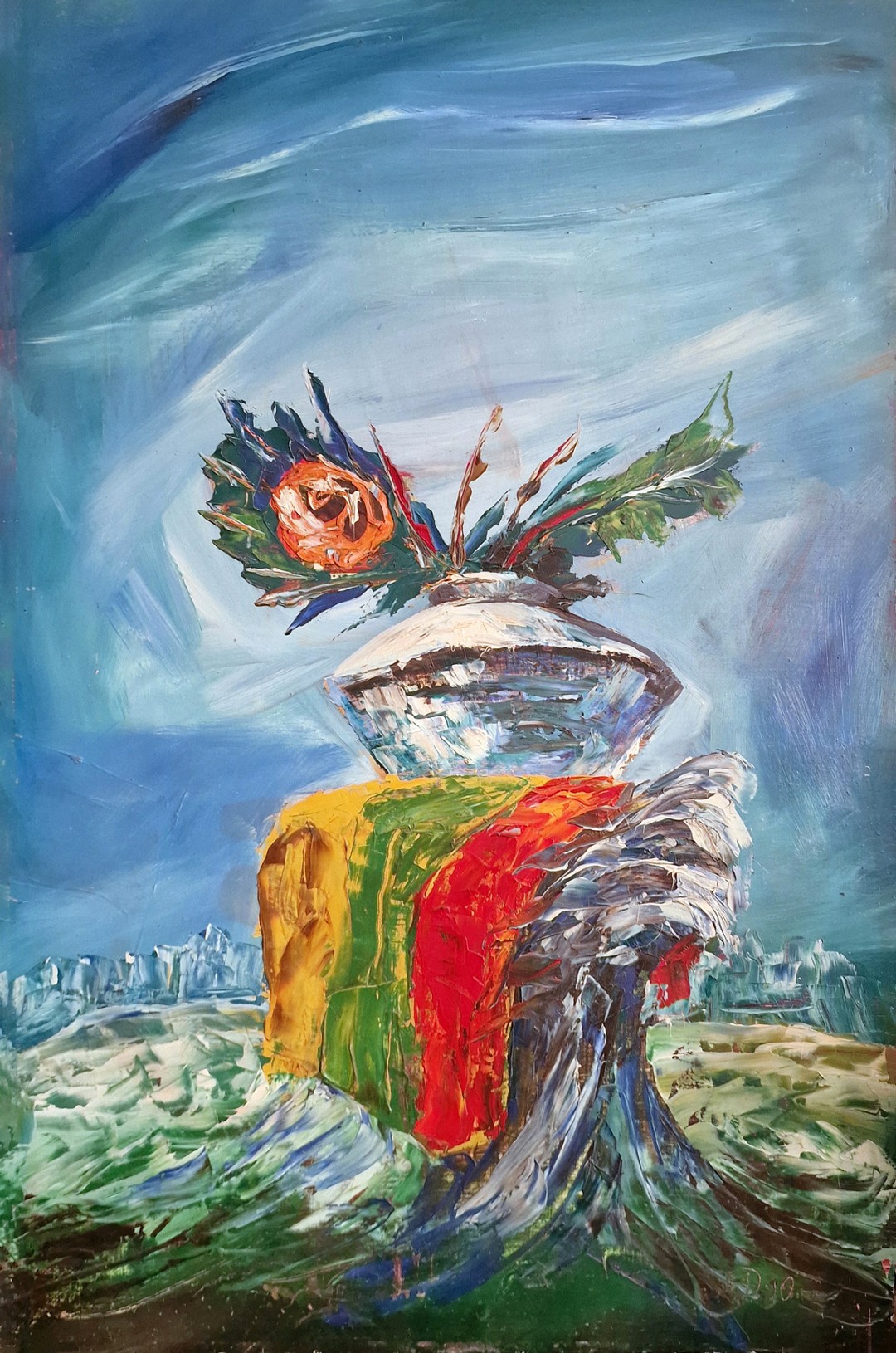 Jis pasakoja tik po tėčio mirties pastebėjęs dar vieną visoje kūryboje naudotą simbolį – indą: ąsočiai, puodynės, amforos. Vienur sudužę, kažkas iš jų išsilieję arba persišviečiantys.