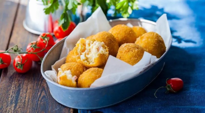 Virtų kiaušinių kroketai su kumpiu ir sūriu