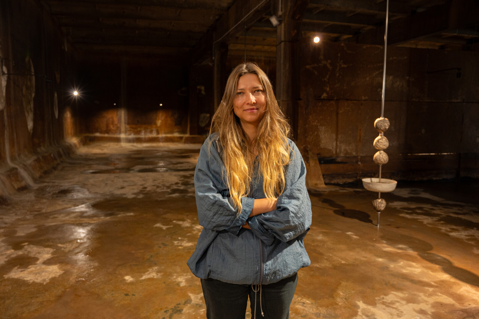 Londone gyvenanti ir kurianti Urtė Janus nebenaudojamame rezervuare pristato instaliaciją „Tekantys kūnai“.